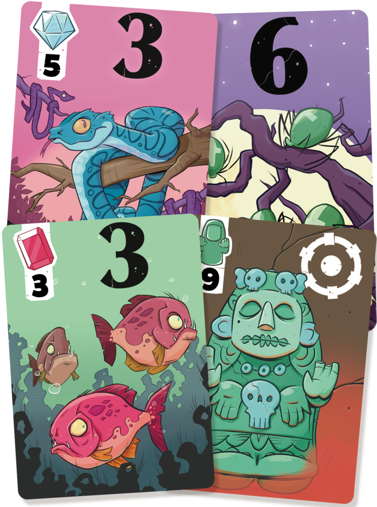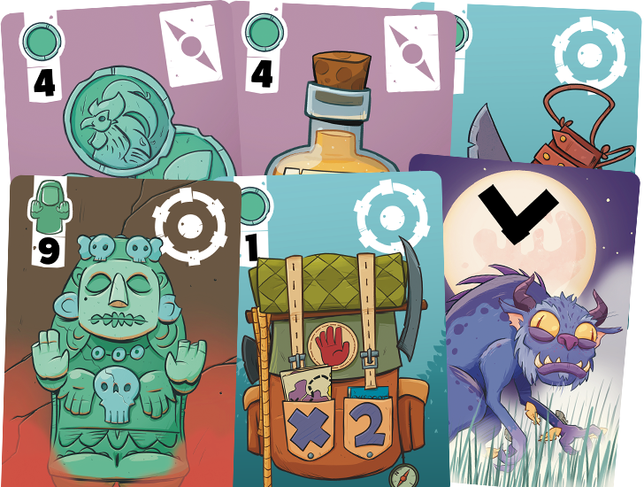 Try to bribe others, save yourself using a machette or see who is brave enough to face the Statues of Doom! Simply shuffle all the extra goodness into the base deck and go.